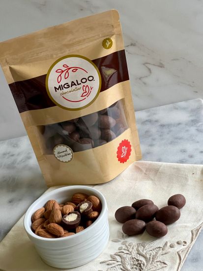 We use delicious, high quality Chocolate from an organic Hacienda in Tabasco, Mexico to coat our Migaloo Marbles. These Dairy & Soy Free Dark Chocolate covered Almonds are perfect for gift giving and enjoyable for gift yourself!